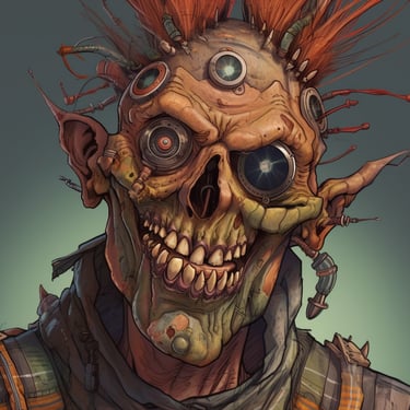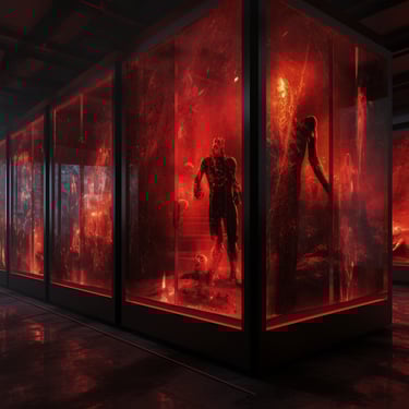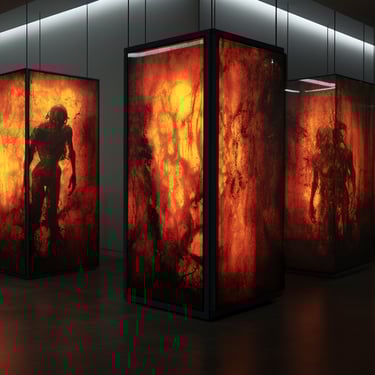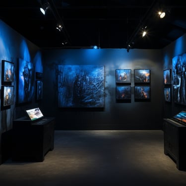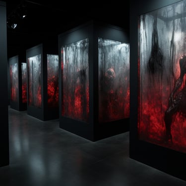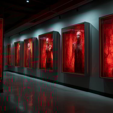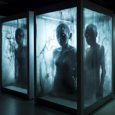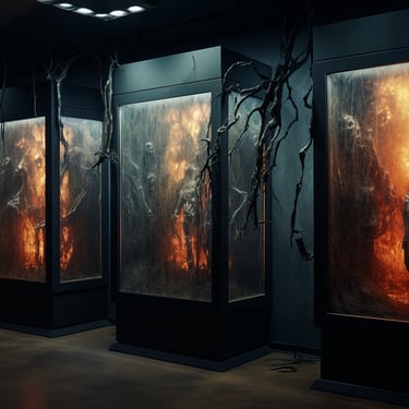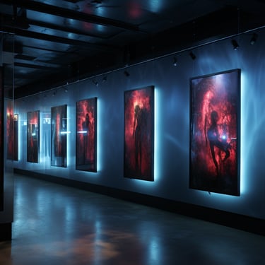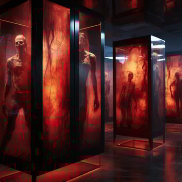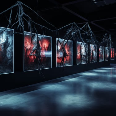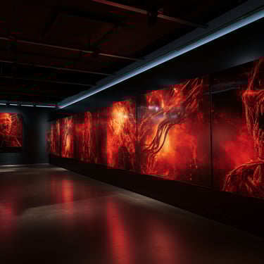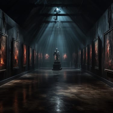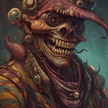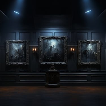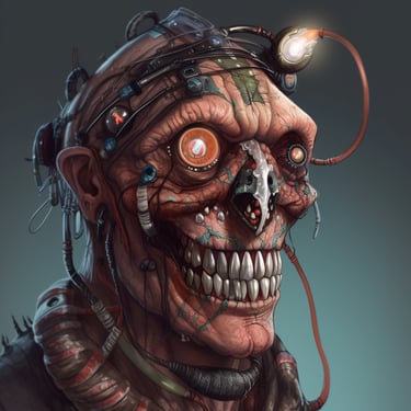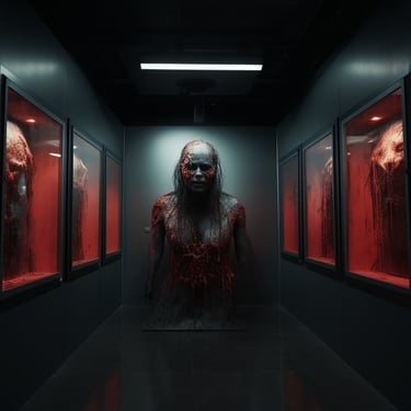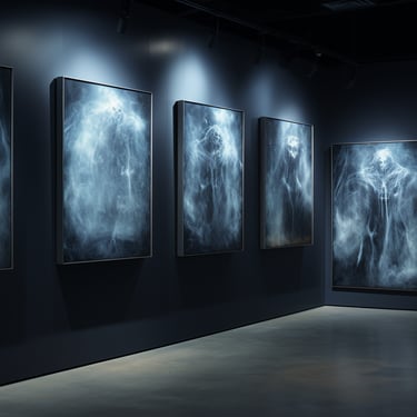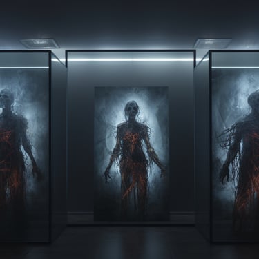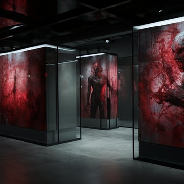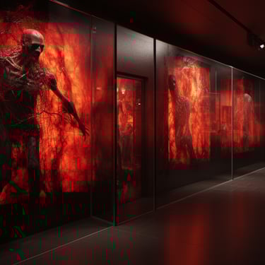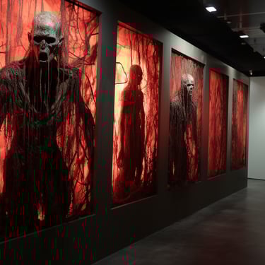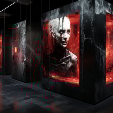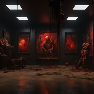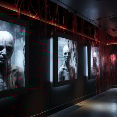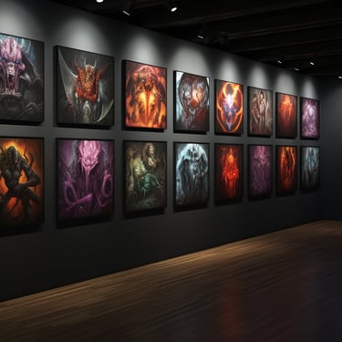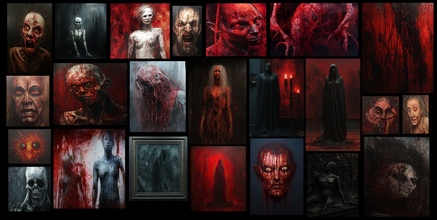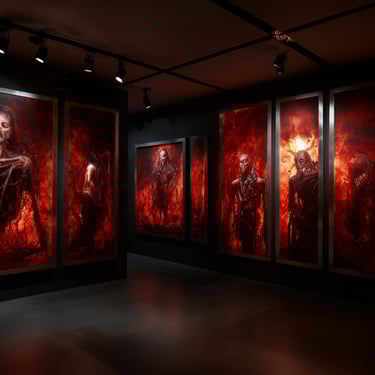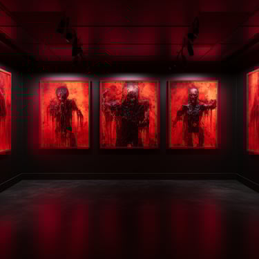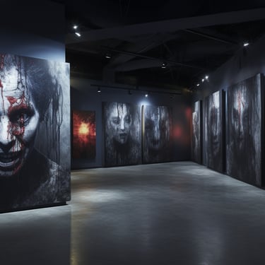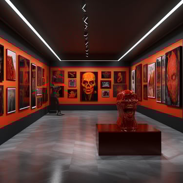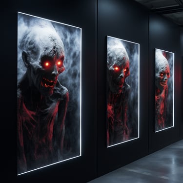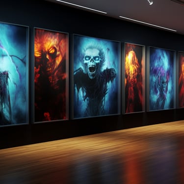 The FrightSpace collection includes a small portfolio of unique artwork pieces, exploring multi-dimensional grotesquery and horror-themed entities, each captured and crafted digitally utilizing unorthodox creative processes to be shared as a proprietary trade secret.