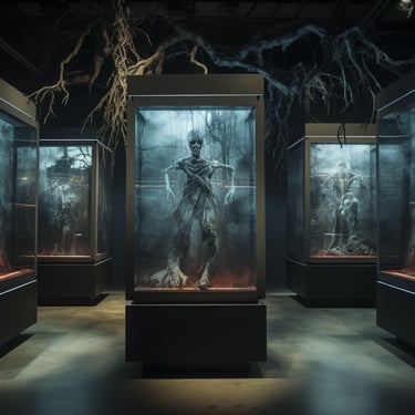 Samples of more than 1000 horror-themed mock exhibit layout assets for concept planning, design tactics, and interactive approach modelling.